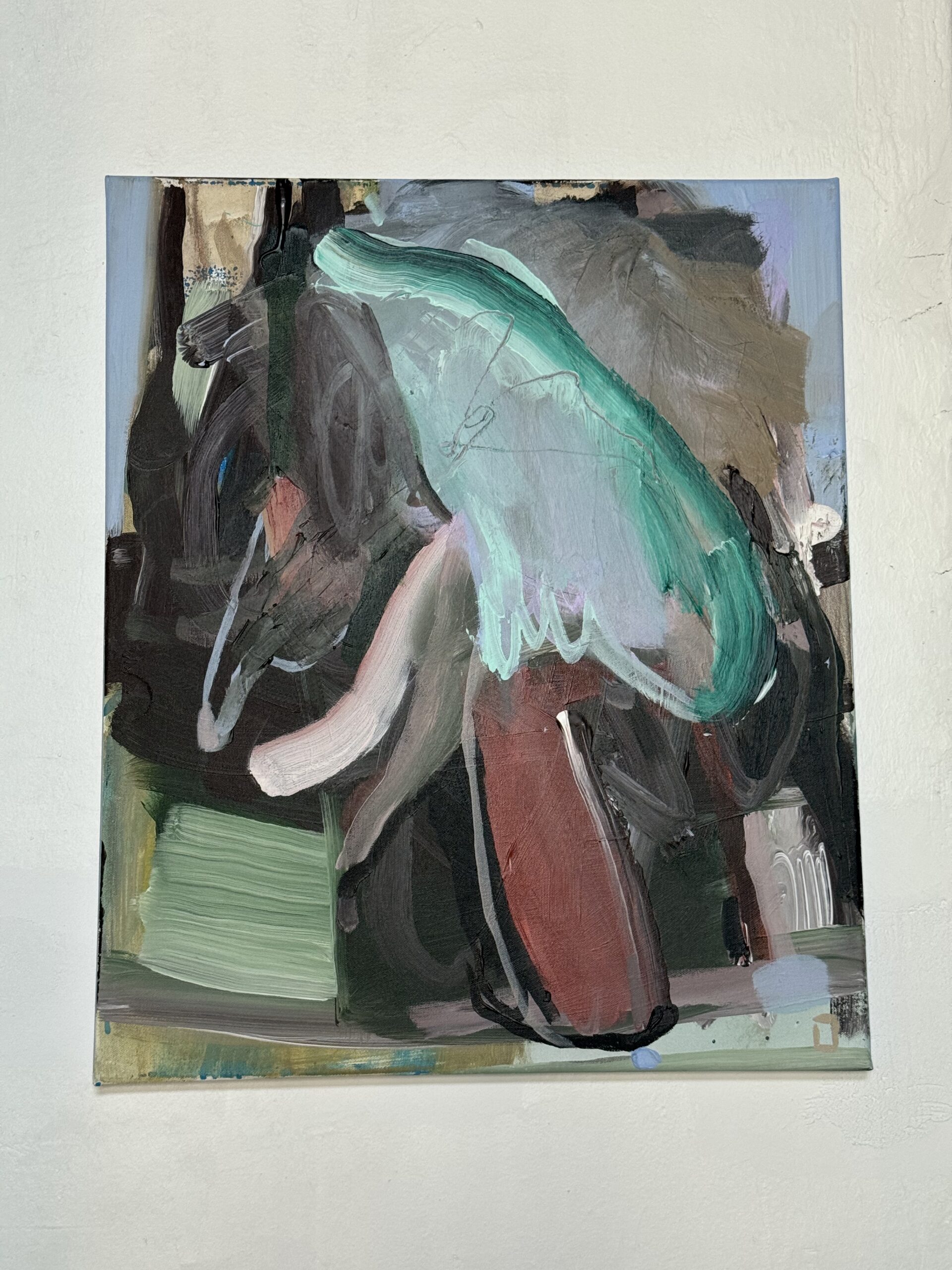 Eesti kunstniku Liisa Jugapuu signeeritud originaalteos ”Piiratud keel”. Teose suurus on 60×50. Valmimisaasta 2024. Akrüül lõuendil.