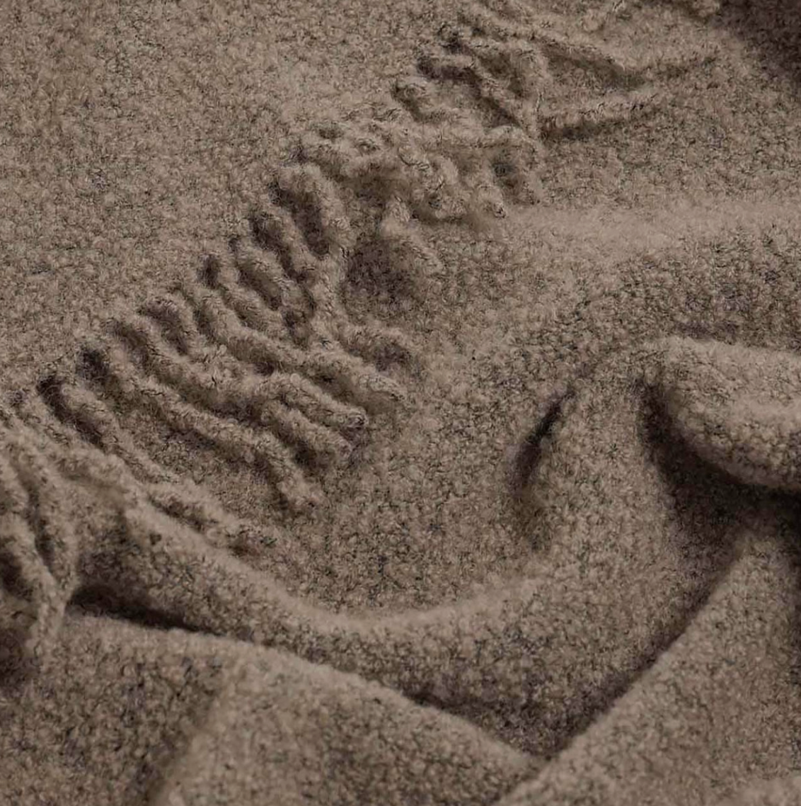 Villasisaldus (80%) tagab suurepärase soojahoidvuse ja loomuliku hingavuse, samas kui 20% polüester muudab pleedi vastupidavamaks ja aitab hoida selle kauni kuju aastateks. Otsi ääristavad narmad toovad disaini juurde kerget mängulisust ja loomulikkust.