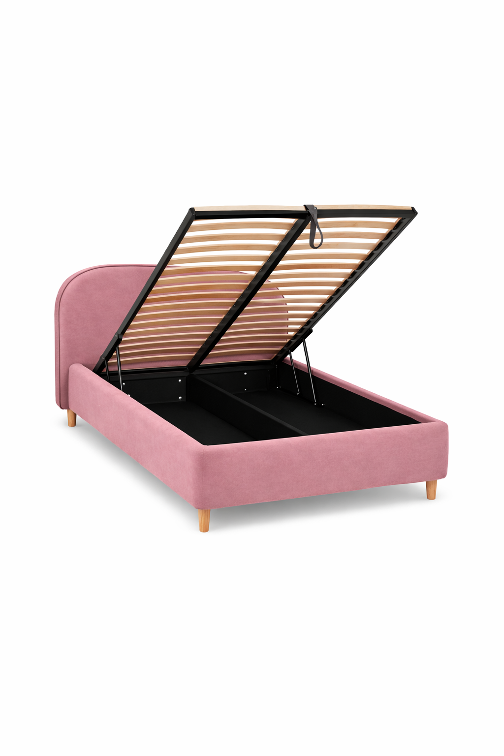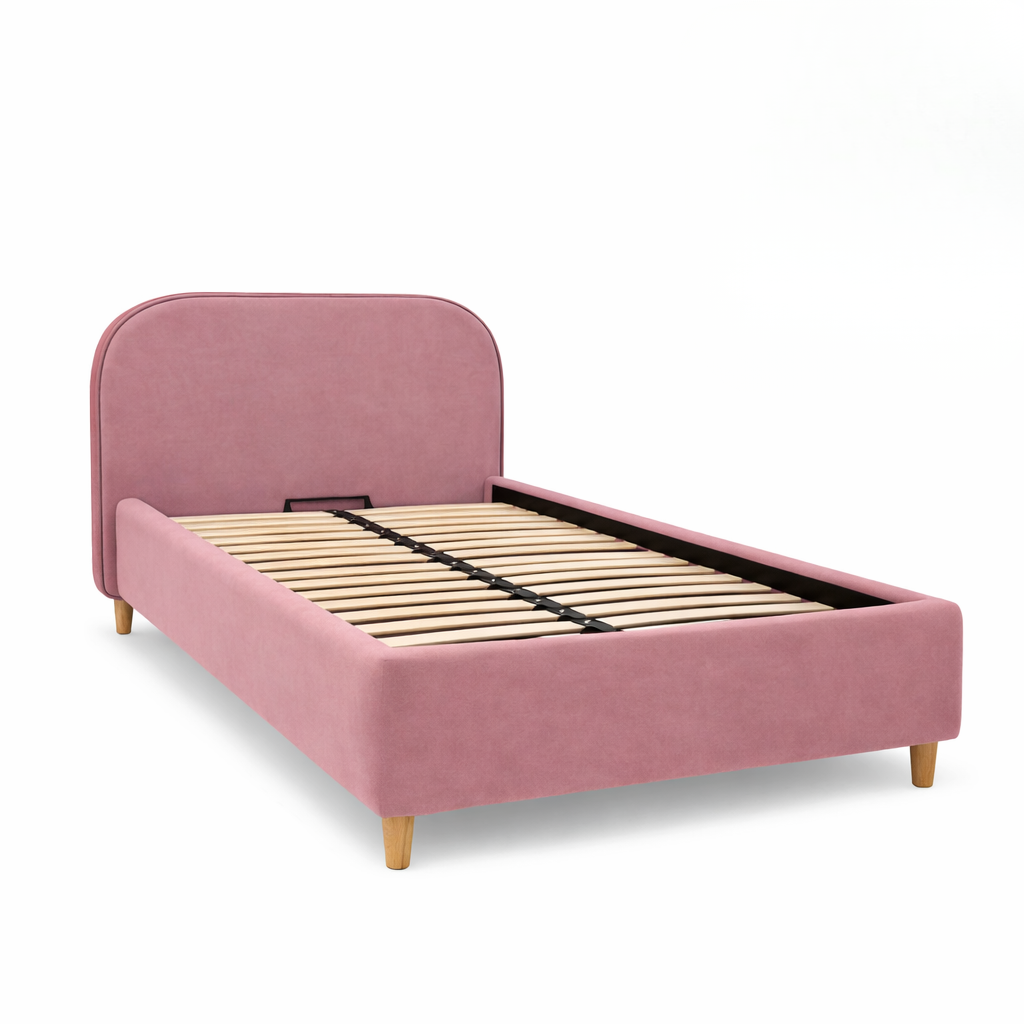 Julge kombinatsioon puhtast disainist ja ootamatust sarmikusest. Selle voodi voolujooneline vorm peidab endas ka praktilist panipaika, mis lisab elegantsile nutika funktsionaalsuse mõõtme, kõik kaetud pehme sametise kangaga.