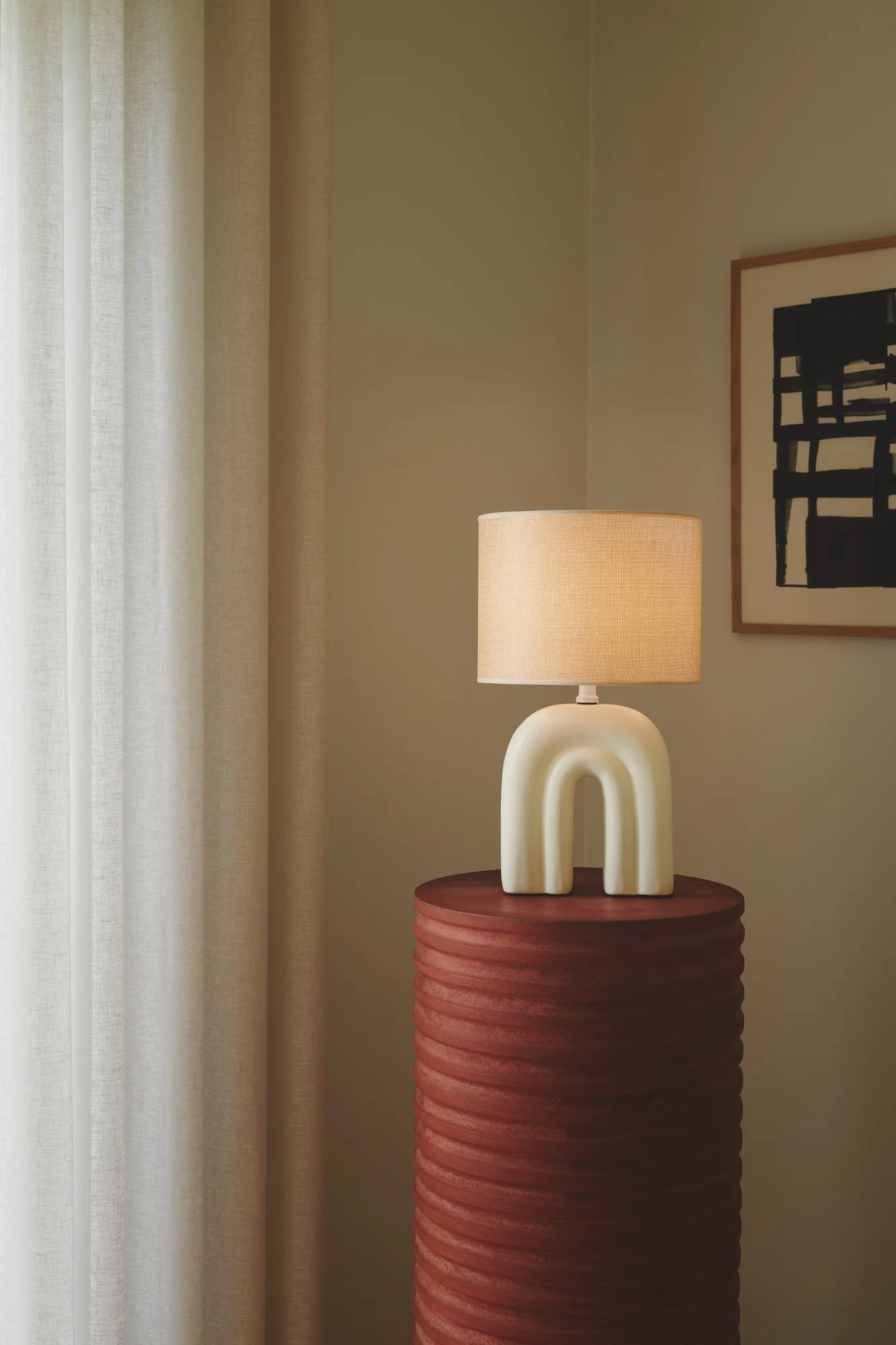 Pehme ja voolujoonelise disainiga Haze laualamp toob interjööri rahuliku ja hubase atmosfääri. Selle orgaaniline vorm annab lambile skulpturaalse ja dekoratiivse ilme. Keraamiline alus koos linase kupliga loob harmoonilise materjalide kombinatsiooni, mis lisab ruumile soojust ja tekstuuri.