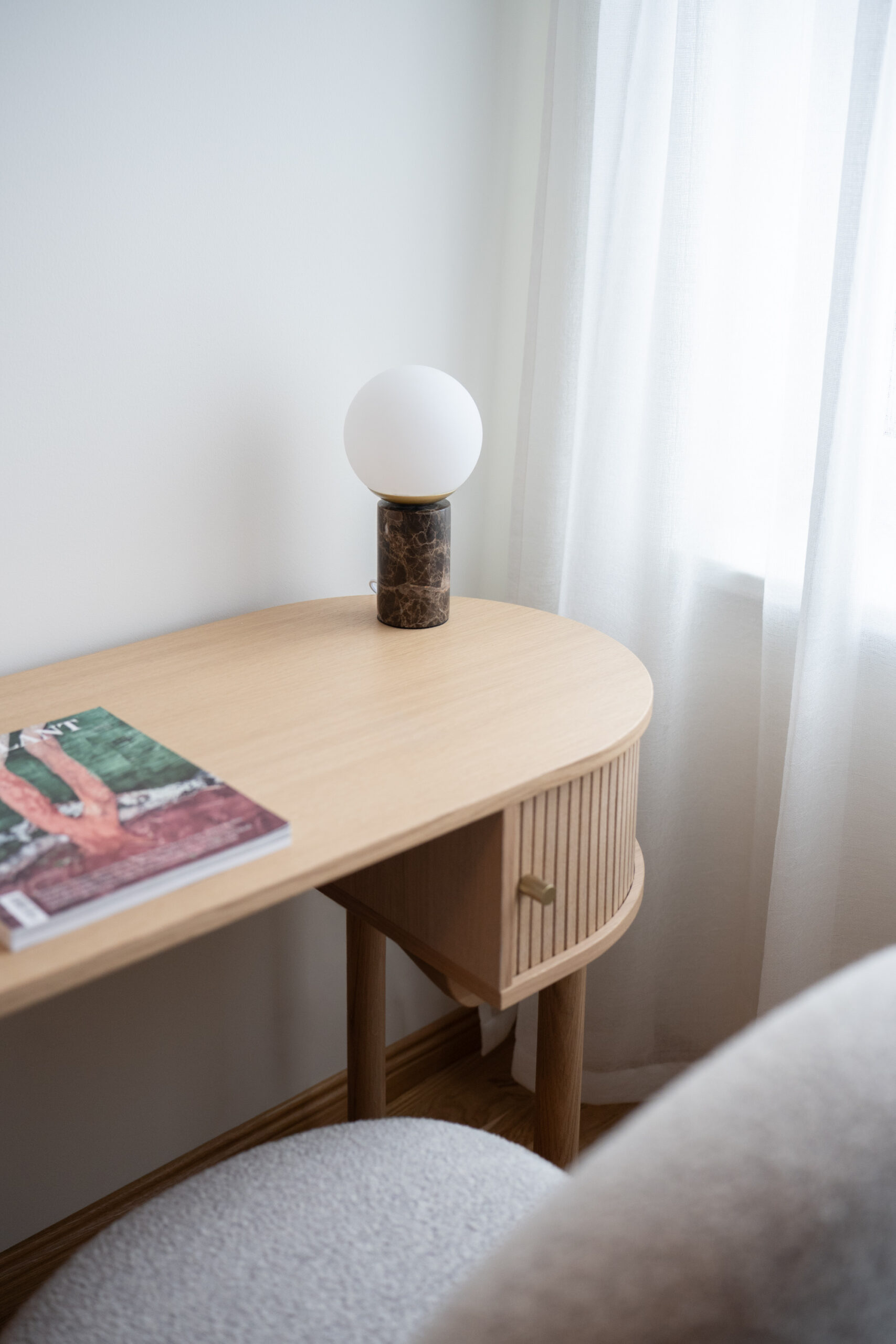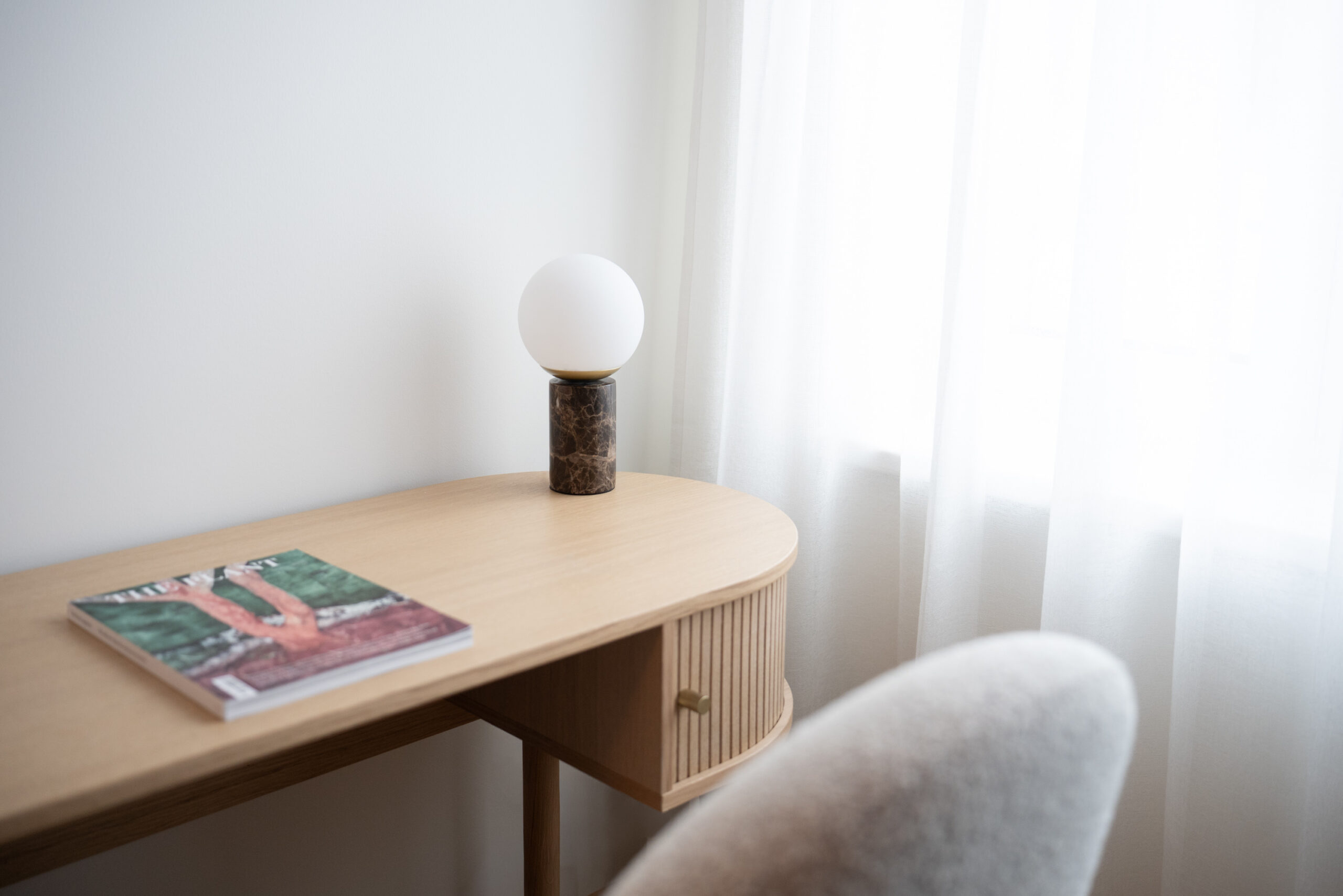 Lilly on dekoratiivne laualamp, mis ühendab lihtsuse ja elegantsi kõige peenemas võtmes. Massiivse marmoraluse ja valgust hajutava opaalvalge klaaskupli koosmäng loob modernse disainikeele, millel on kerged art déco mõjutused.