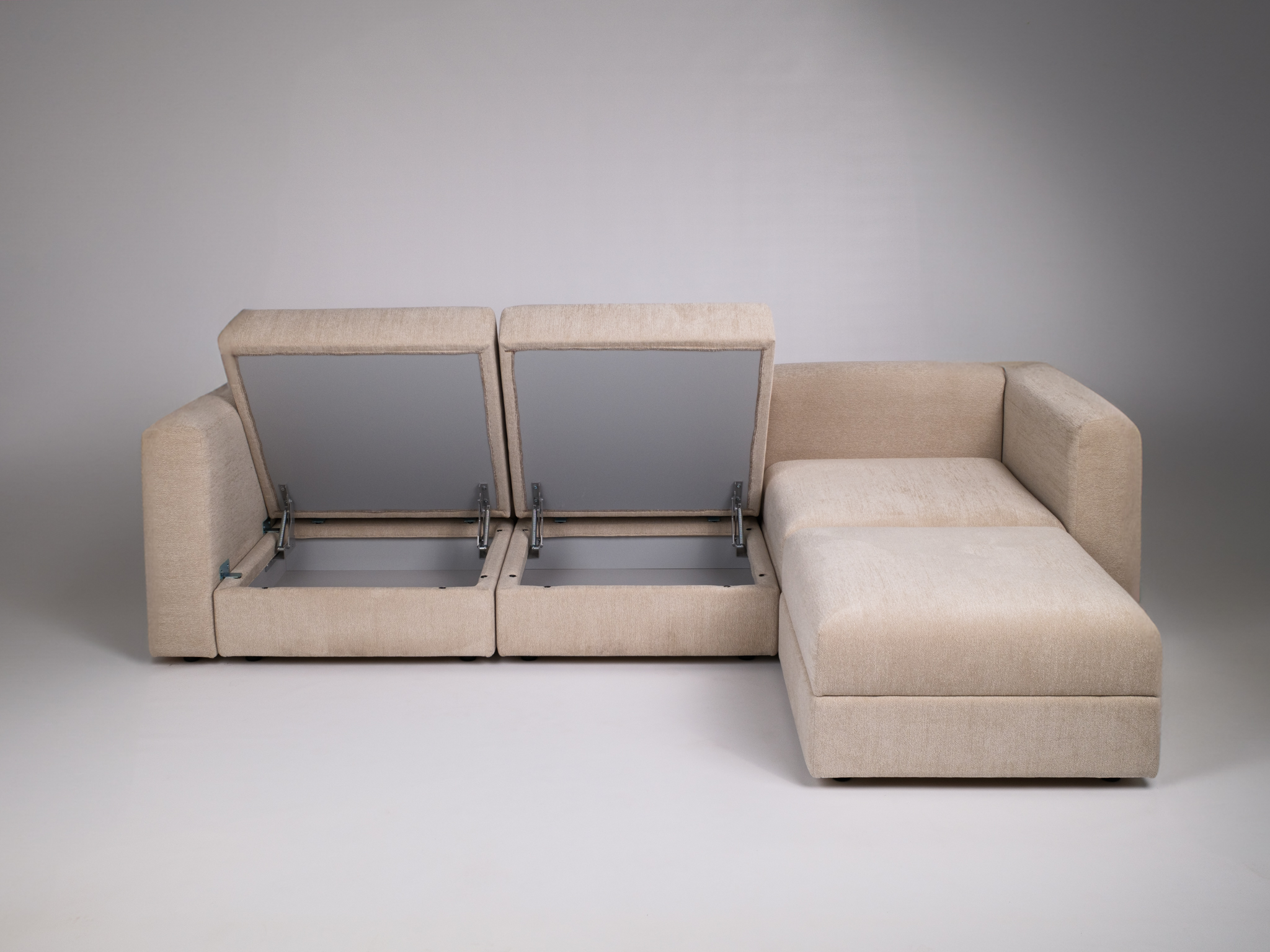 Iga istumisosa all on avar pesukast – nutikas lahendus panipaiga loomiseks. Pehme istmepind tagab mõnusa lõõgastuse ning mooduleid saab hõlpsasti hooldada ja ümber paigutada.