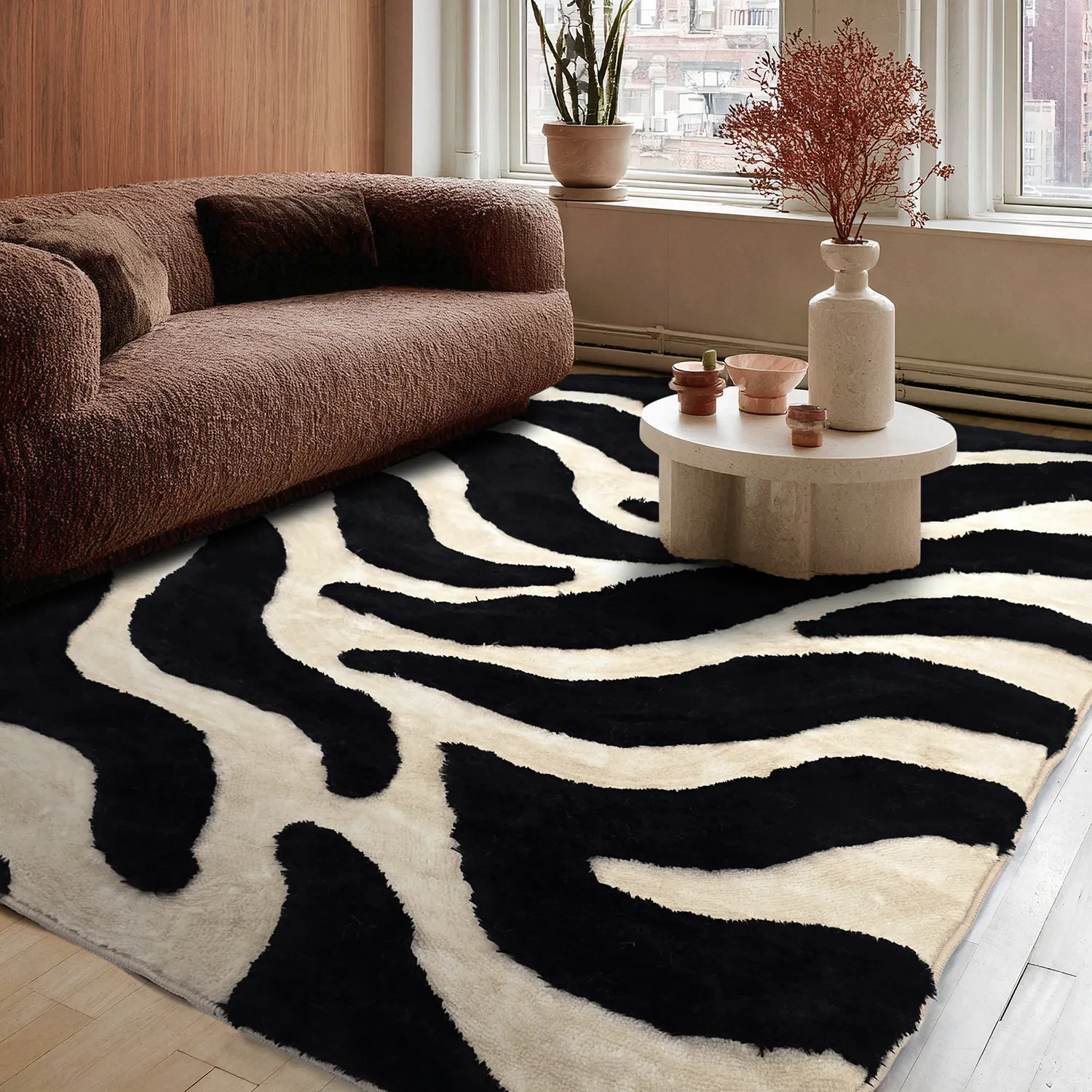 Pehme karvaga vaip Fergana must/beež