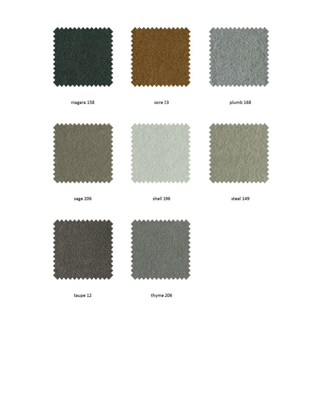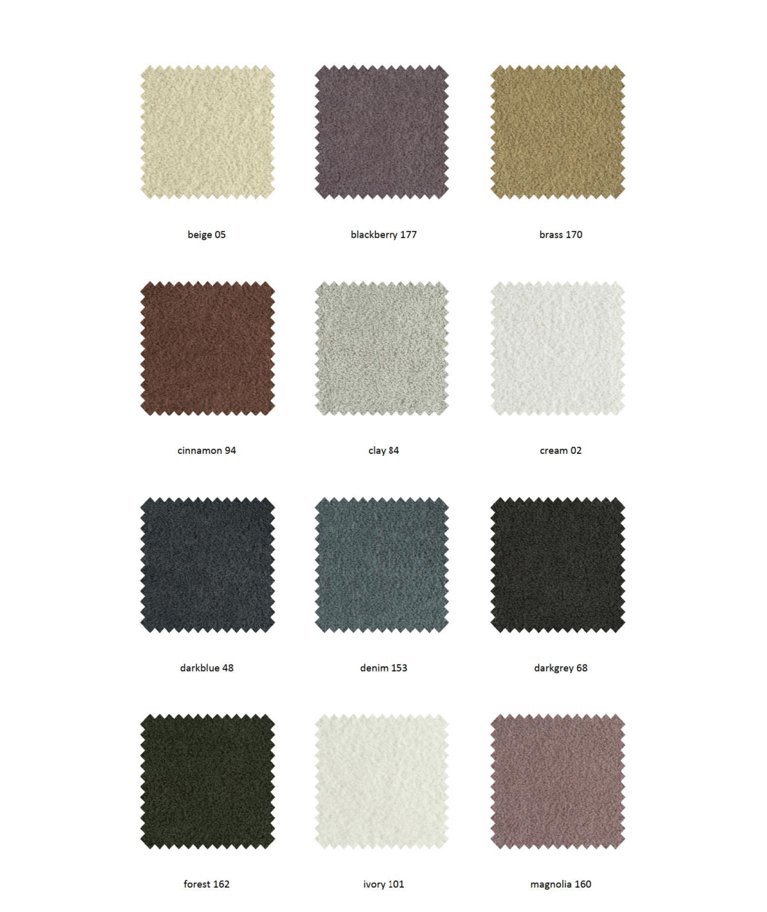 | Värv | beige05, blackberry177, brass170, cinnamon94, clay84, cream02, darkblue48, darkgrey68, denim153, forest162, ivory101, Kliendi valik, magnolia160, niagra158, ocre23, plumb168, sage203, shell196, steel149, taupe12, thyme206 |