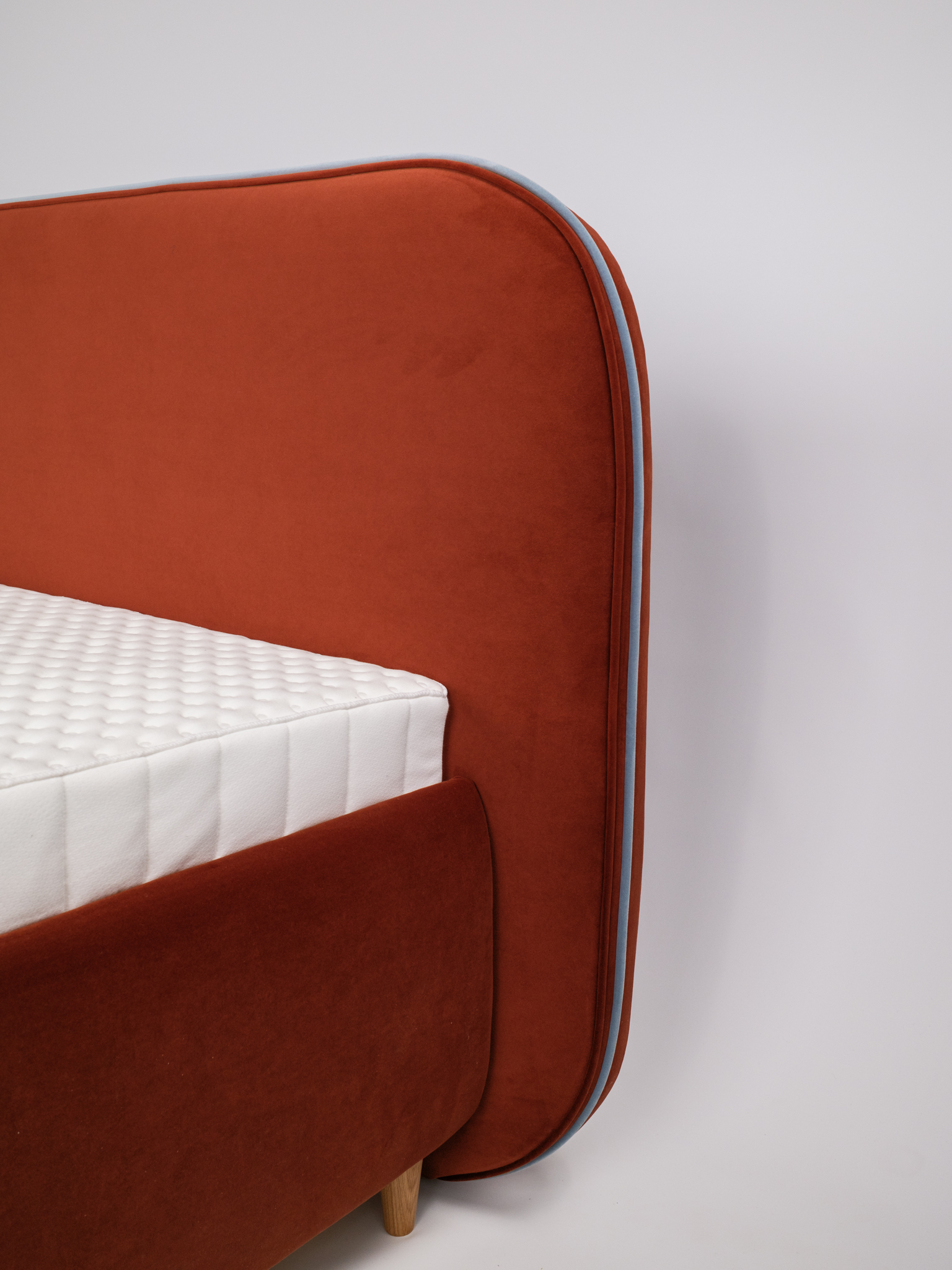 Julge kombinatsioon puhtast disainist ja ootamatust sarmikusest. See voodi toob esile minimalistliku silueti kaasaegse kiiksuga – peened kumerused ja nutikas funktsionaalsus, kõik kaetud pehme sametise kangaga. Tugev vineerraam tagab voodi vastupidavuse ja stiili ühendamise.